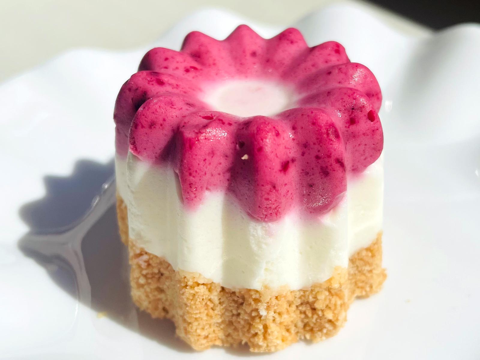 美瑛産ハスカップと北海道産クリームチーズを使用したレアチーズです。ハスカップの酸味と濃厚なクリームチーズの相性をご堪能下さい。